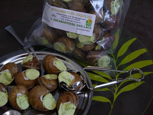 48 Escargots à la bourguignonne en coquilles en vrac dans un sacA réchauffer à 200% dans un four chaud pendant 7 mn
