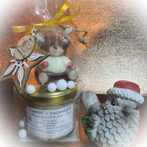 Coffret composé d'une Terrine Escargots nature (100g) et d'un ourson en chocolat (20 g)