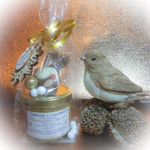 Coffret Terrine Escargots Piment Espelette (100g) et Ourson en chocolat au lait (20g)